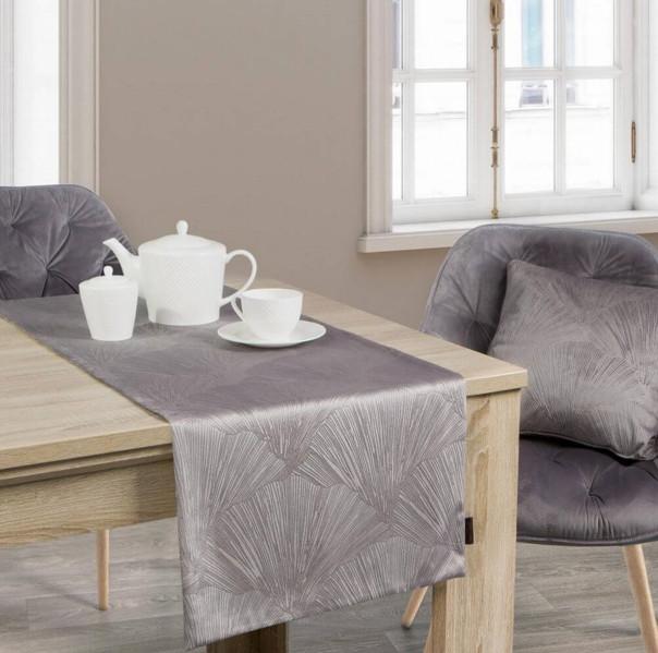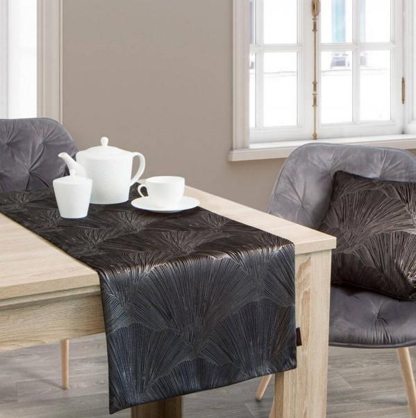 Az asztali futószalag egy hosszú és keskeny szövetdarab, amelyet általában dekoratív asztalfedőnek neveznek. Az asztali futó nem fedi le teljesen az asztallapot, elhelyezhető az asztal közepén, hosszabb oldala mentén vagy rövidebb oldala mentén. Tökéletes mindennapi használatra, egyszerű asztal dekorációjaként, különleges alkalmakra dekorációs elemként. A futófelületek jellegzetessége a méretarányok: általában a hosszuk kétszerese a szélességüknek. Az asztali futónak körülbelül 20-25 cm-re kell lógnia az asztal mindkét oldalán, hogy esztétikusan nézzen ki. Asztali futó kiválasztásakor elsősorban esztétikai értékére koncentrálhat, nem pedig az asztal elrejtésének szükségességére. A puha bársony anyagból készült, fényes, ginkgo levelek formájú nyomattal készült asztali futó minden asztalon gyönyörűen mutat. Tökéletes választás a divatos, fényes kiegészítők szerelmeseinek. Ha az asztali futószalagot ezen kívül egy függönnyel vagy ugyanabból a sorozatból származó díszpárnahuzattal kombináljuk, elegáns és egyedi elrendezést kapunk.