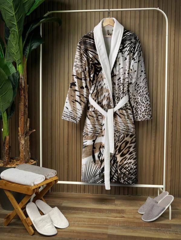 Egy ilyen ajándékot kiegészíthet egy stílusos pamut fürdőköpeny az Eva Minge kollekcióból. Rendkívül könnyű, szellős és kellemes tapintású, teljes viselési kényelmet biztosít. A szövet teljes felületén elterülő dizájner állatmotívum eredeti és egyedi karaktert ad. A kényelmet, a luxust és a művészi dizájnt minden nő értékelni fogja.