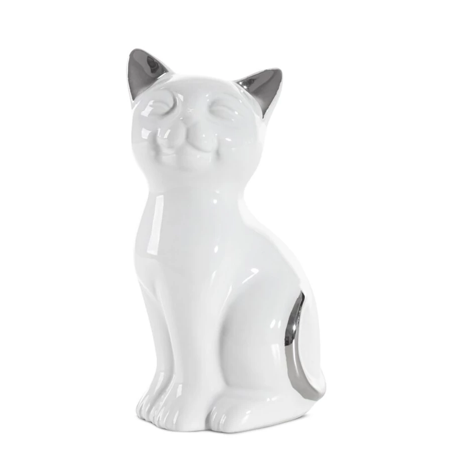 Módot keres nappalija elrendezésének változatosabbá tételére? Egy macska – egy kerámia figura , amely biztosan tetszeni fog ezeknek a bájos lényeknek a rajongóinak – tökéletes lesz erre a szerepre . Egy ülő macskát ábrázoló fehér díszítő figura ezüst díszítéssel . Kiválóan alkalmas belső dekorációra, kiemelve az elrendezés karakterét és rendkívül hangulatos légkört teremtve. Ez a részlet egyben eredeti ajándékötlet is. Tekintse meg kínálatunk többi figuráját is, és alkossa meg saját macskakollekcióját!