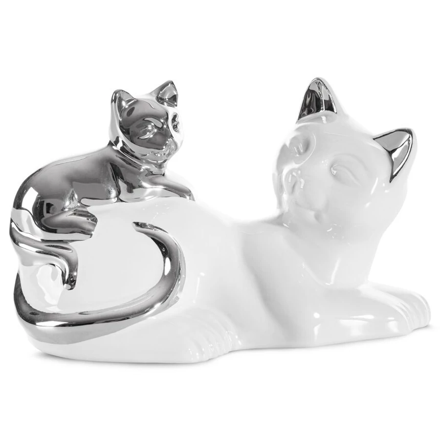 Módot keres nappalija elrendezésének változatosabbá tételére? Egy macska – egy kerámia figura , amely biztosan tetszeni fog ezeknek a bájos lényeknek a rajongóinak – tökéletes lesz erre a szerepre . A fehér-ezüst díszfigura, amely egy macskát és egy kis cicát ábrázol, kiválóan alkalmas belső dekorációra, kiemelve az elrendezés karakterét és rendkívül hangulatos hangulatot teremtve. Ez a részlet egyben eredeti ajándékötlet is. Tekintse meg kínálatunk többi figuráját is, és alkossa meg saját macskakollekcióját!