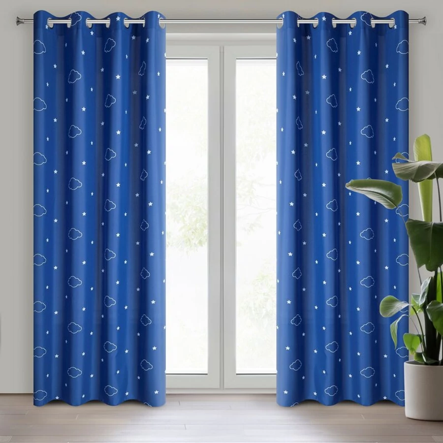 A sötétkék szín eleganciát és nyugalmat sugall, így ideális a gyermekek pihenéséhez és játékához. A függöny méretei 140 cm széles és 250 cm hosszú, ami lehetővé teszi, hogy bármilyen ablakhoz alkalmazkodjon.