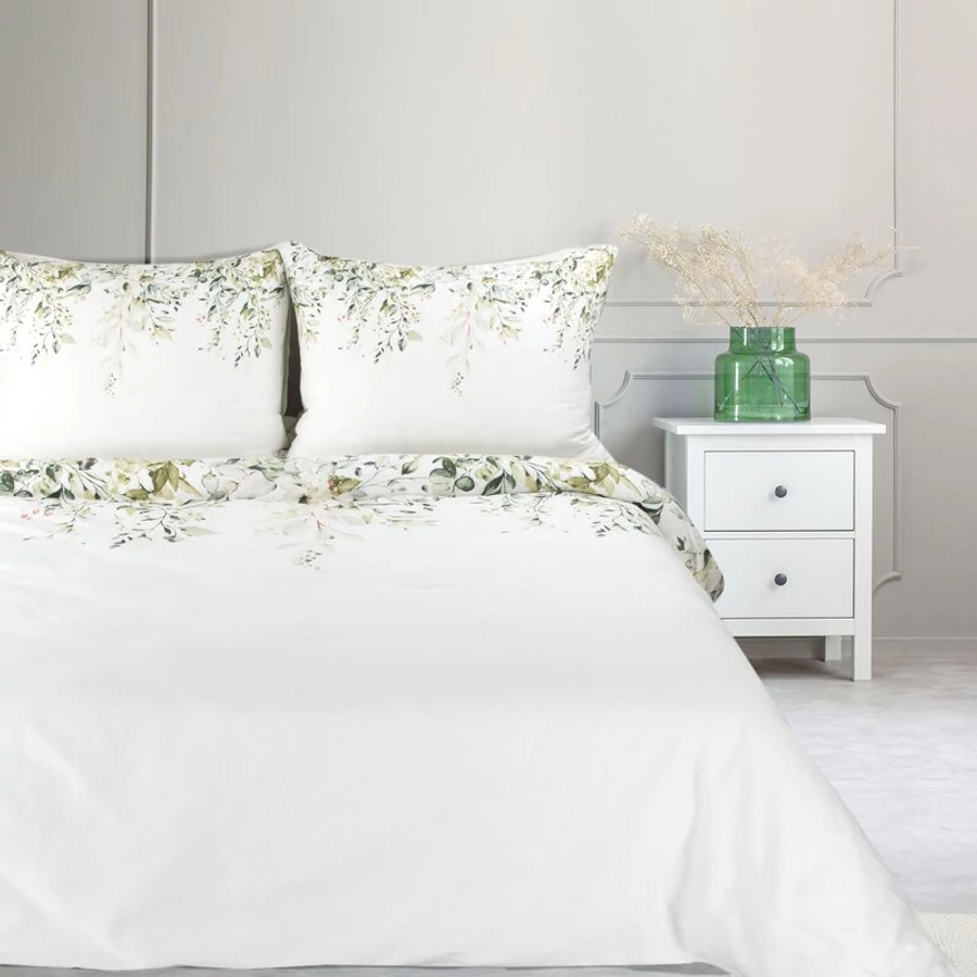 A SPRING 23 ágyneműgarnitúra kiváló minőségű pamut szaténból készült virág motívummal. A modern rotációs nyomtatási technika jellegzetes mintázatot, telített színeket és szokatlan színátmeneteket garantál , és biztosítja, hogy a nyomat még sok mosás után sem veszítse el intenzitását . A szanforizálási eljárás garantálja, hogy a méret nem változik, és az ágynemű nem zsugorodik még sok mosás után sem.