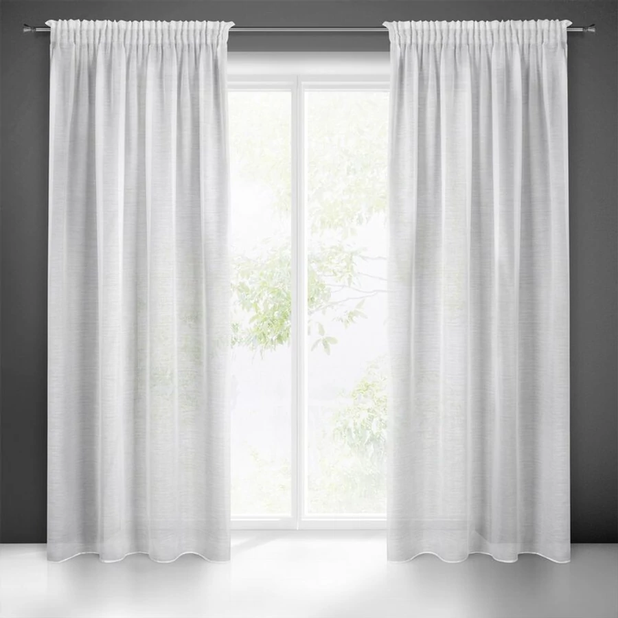 A sima és egyszerű fehér függöny olyan ablakdekoráció, amely vizuálisan felfrissíti a belső tereket, és bármilyen környezetben jól működik. A hófehér árnyalatú, egyszerű és kecses függönyt félig átlátszó matt etaminból varrták, amely nagyon természetesen díszíti az ablakot. Ez a függöny ötvözi a laza, könnyed szabadságot a városi eleganciával. Ez a kiegészítő tökéletesen illik az angol vagy a provence-i stílushoz, valamint a hálószobában, a gyerekszobában vagy az ifjúsági szobában is megállja a helyét. A félig átlátszó, sűrűn szőtt szövet megvédi az ablakot a túlzott napfénytől, ezért különösen ajánljuk olyan helyiségekbe, ahol sok a napfény. A felső részbe varrt univerzális szalag lehetővé teszi a függöny felakasztását kampókkal, akasztókkal a függönyrúdra. A dekoráció teljes szélességében egyenletes gyűrődése lehetővé teszi a természetes megjelenés megőrzését.