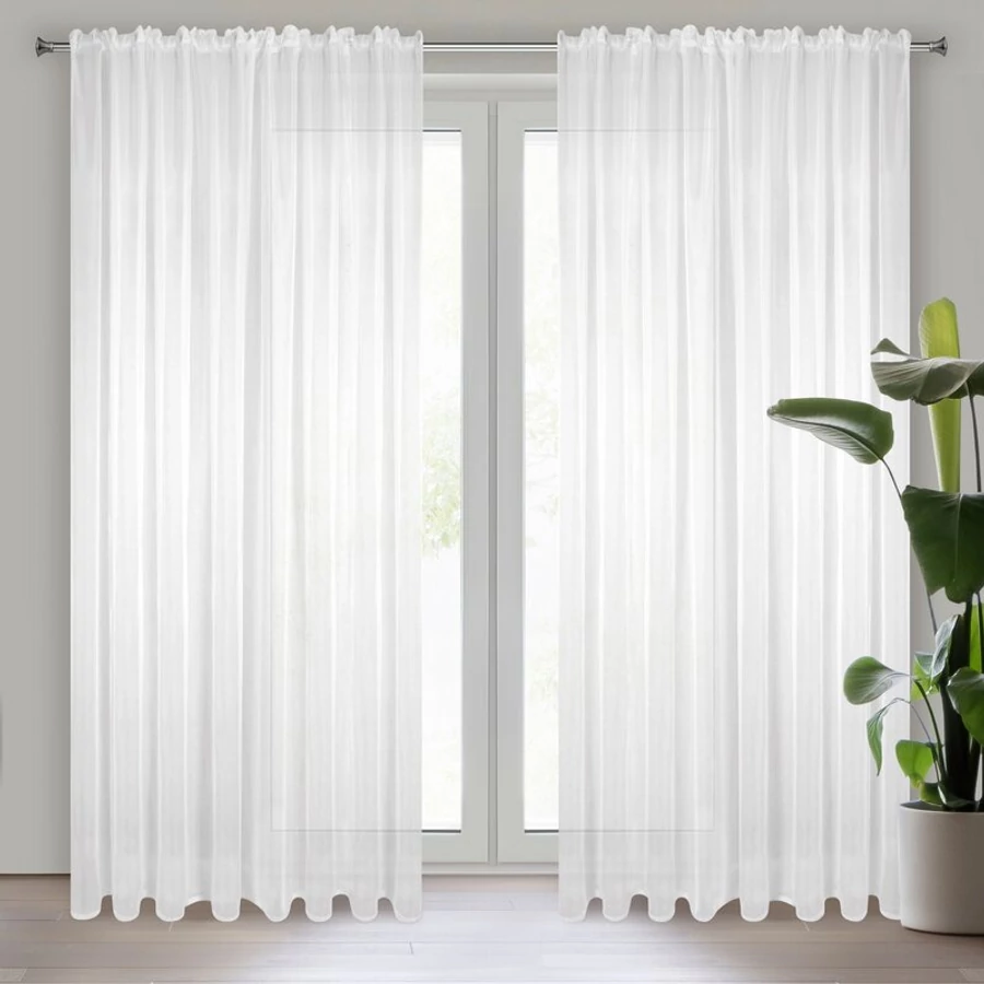 A finom, szellős és könnyű függönyök olyan dekorációs elem, amely soha nem megy ki a divatból! Fedezze fel a kész fehér TIA függönyt , amely sima és könnyű voleból készült. A TIA függöny eleganciát kölcsönöz a belső térnek, és vizuálisan felfrissíti a belső teret. A függöny egy bevarrt univerzális díszítőszalaggal rendelkezik , amely egyenletesen gyűjti össze az anyagot bármilyen szélességben, valamint van egy alagút, amely lehetővé teszi a függöny rögzítését egy rúd függönyrúdhoz . Az ilyen dekoráció időtlen dizájnelem, amely minden enteriőrben jól használható. Tökéletesen illeszkedik hálószobája, étkezője vagy nappalija ablakába, egyedi karaktert és egyedi varázst kölcsönözve neki.