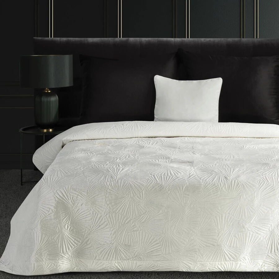 Narzuta welwetowa,wykonana techniką hot press" szerokość: 220 cm, długość: 240 cm, kolor: biały, Gramatura: 200+120+70 GSM, Skład: 100% poliester"